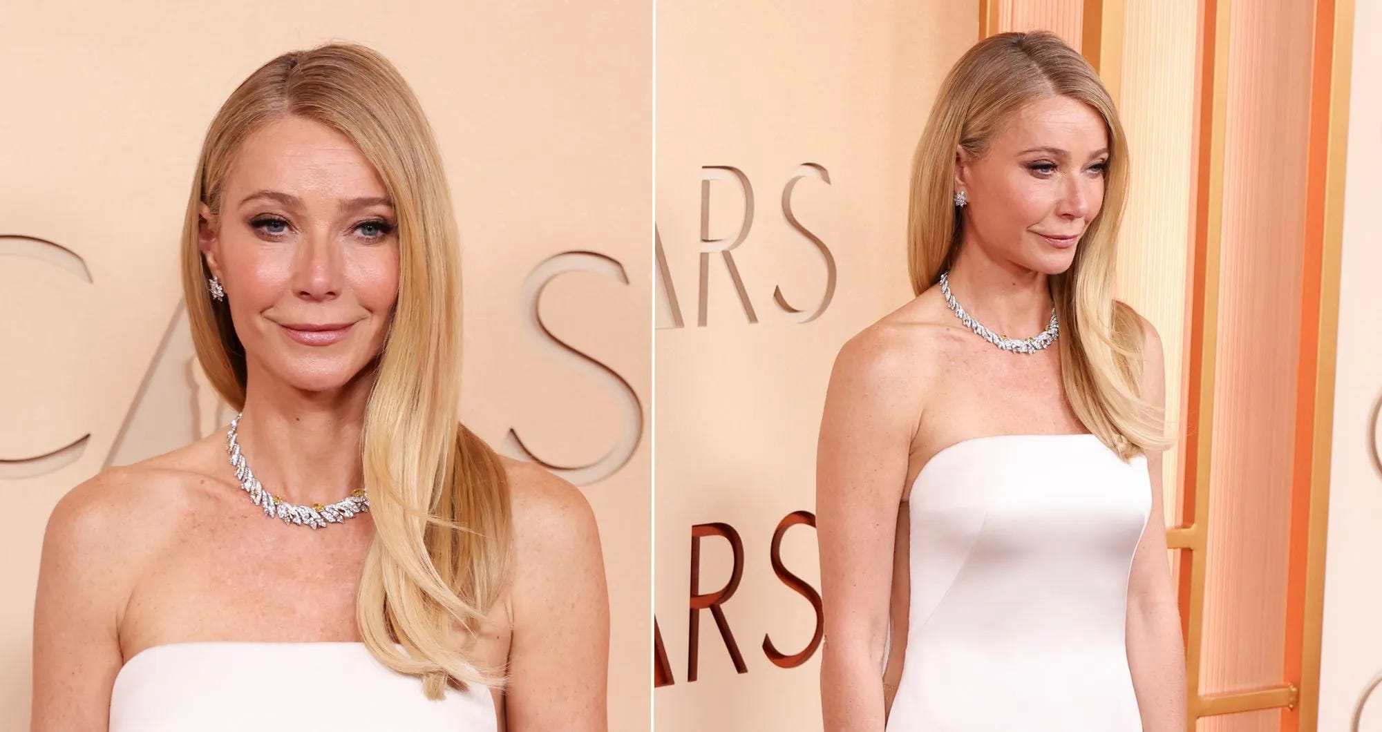 I couldnât believe that it has been 11 years since we saw Gwyneth Paltrow at the Academy Awards! She took a safe, albeit glamorous bet with her Armani PrivĂ© classic cut dress and diamond necklace combo, but that effortless vibe looked undoubtedly stylish and glowy!